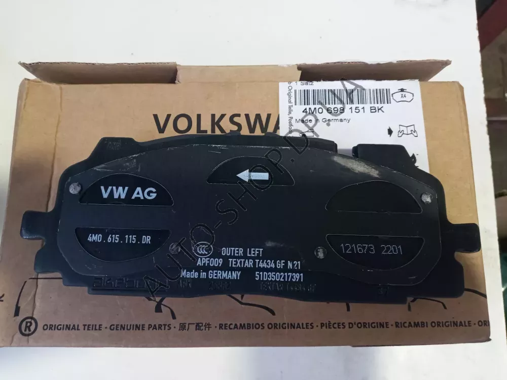 К-кт гальмівних колодок 4M0698151BK - оригинальная запчасть для таких авто, как VAG. Интернет - магазин Аuto-shop гарантирует оригинальность и доступность по наличию всех деталей которые представлены в наших каталогах - деталей, и все её точные заменители.